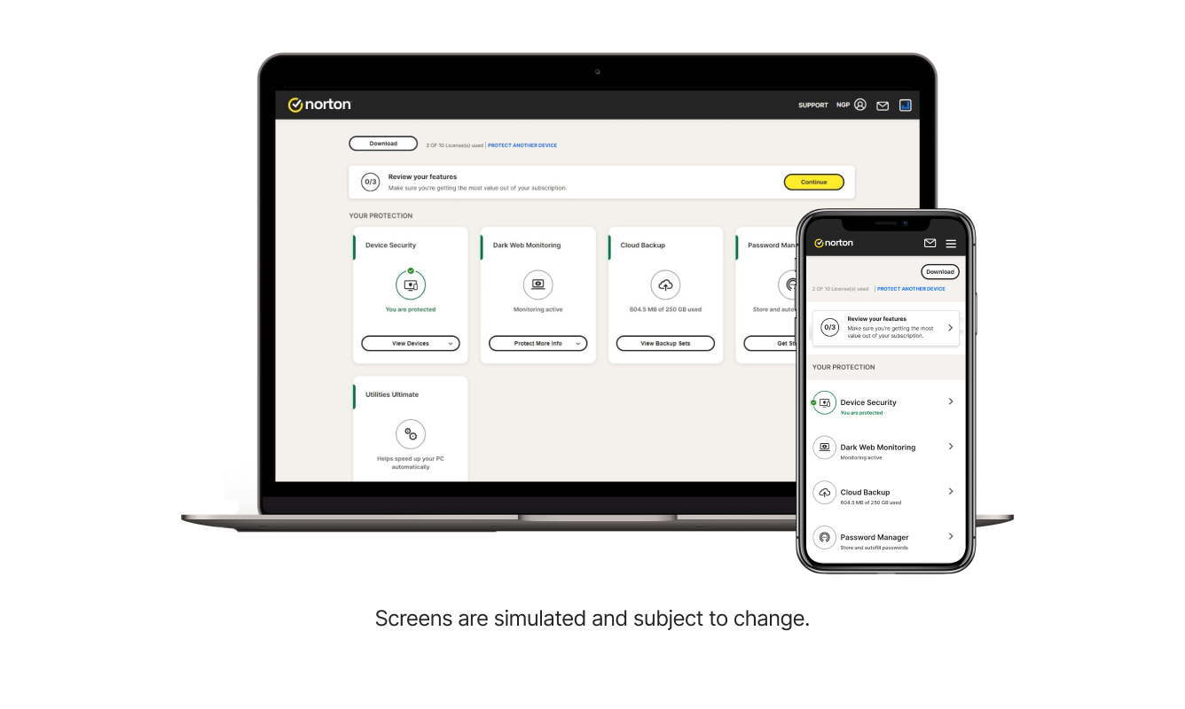 Norton 360 is supported on Windows™ PCs, Mac®, Android™ and iOS devices. Some features are not available on all devices or all operating systems.